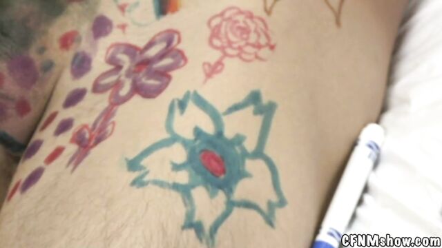 Description:Hi everyone! Today we are going to experiment with Man bush and shaving them down so we have something to work with. After we shaved him down smooth, we took some markers and drew all over his body, it was so much fun! I decided to give him a treat with a little blowjob and fucking action at the end, he deserved it!