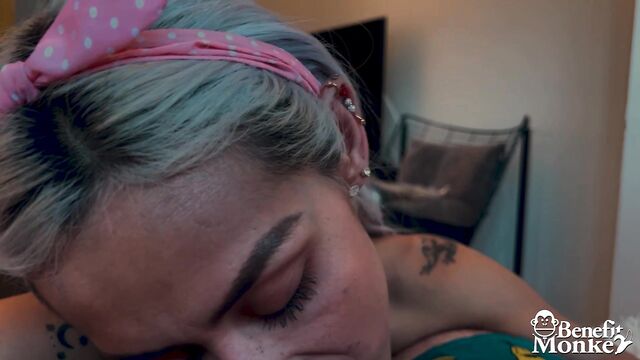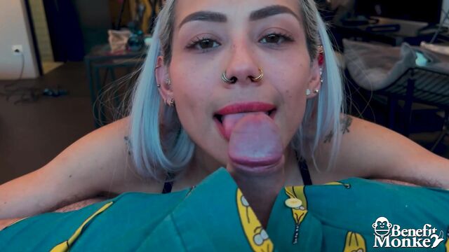 Description: Veronica Leal is back to give to the monkey a great blowjob.