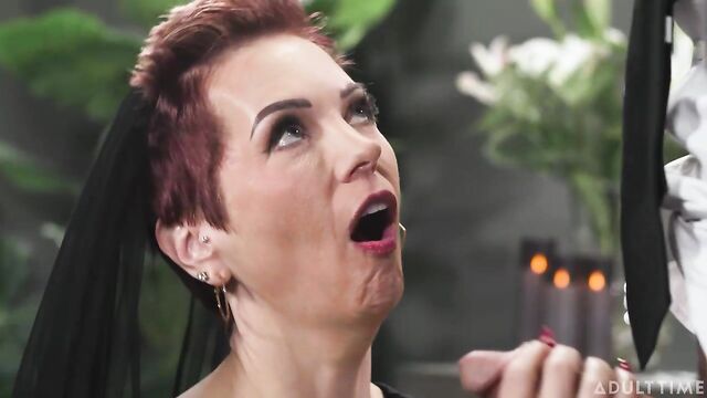 Description: A funeral attendant, Jayden Marcos, goes to check on Ruby Lynne, a grieving widow, before a funeral. When he chats with her, however, he's surprised to see that she's not grieving very much at all. In fact, she's ready to move on, and a good-looking young man like Jayden is just the kind of bounce-back she needs. Jayden's flustered and aroused as Ruby comes on to him, and he simply can't resist giving her what she wants. They'll have to be careful, however, since there are a few funeral guests who are looking to offer their condolences to Ruby, so these two might get interrupted once or twice!