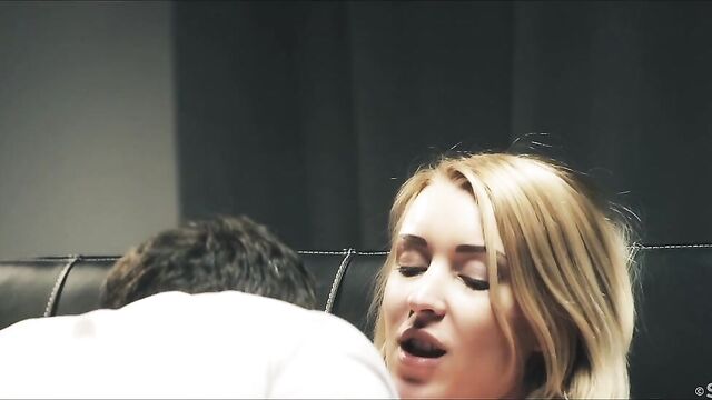 Description: Gorgeous blonde Amaris doesn’t says a word to her lover Kristof Cale, as Andrej Lupin’s erotic movie "Silence" begins. As he talks animatedly, she simply chooses to unbutton his jeans, then seal his lips with a kiss as she strokes his stiff shaft. She smiles up at him as she licks the head of his cock, and bobs her head to suck it deep. She straddles his lap, grinding on him as she presses her beautiful breasts into his mouth. He sucks them eagerly, feeling the nipples harden between his lips, then flips her onto her back to lick and finger her shaved pussy. When she’s dripping wet, he rubs the tip of his dick up and down her slippery slit, drawing out the anticipation before plunging it deep inside her. He pounds into her relentlessly, Amaris rocking her sexy body up to meet every thrust, moaning with pleasure. They spin into cowgirl, Amaris bucking on Kristof’s boner fast and hard, bouncing and grinding her way to an immense climax. As she’s gasping through the aftershocks, Kristof lifts her, deposits her on her back and plows his prick into her soaked pussy in missionary, her legs held high. Immediately finding his rhythm, the rampant cocksman slams into her as she stimulates her clit and writhes beneath him. As the insatiable beauty tips over into her second orgasm, Kristof pulls out to spray her with his hot load. The lovers kiss in "Silence," their body language having spoken volumes.